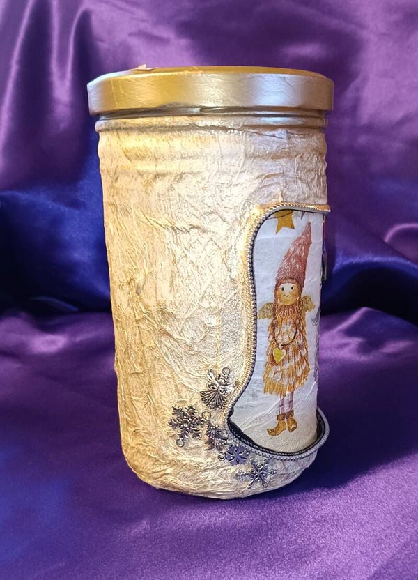 Schraubglas mit Weihnachtsengel-Motiv (LED möglich)