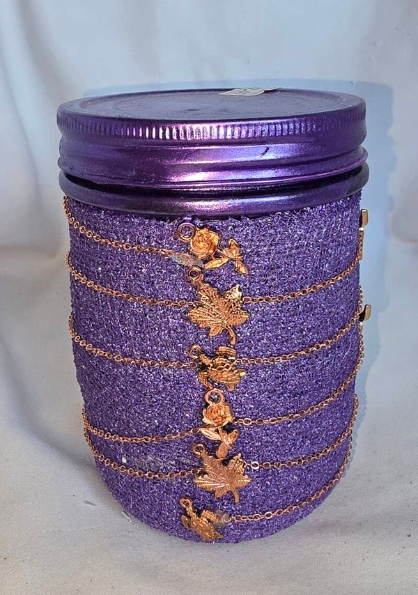 Schraubglas klein, bandagiert mit kupferfarbenem Kettchen