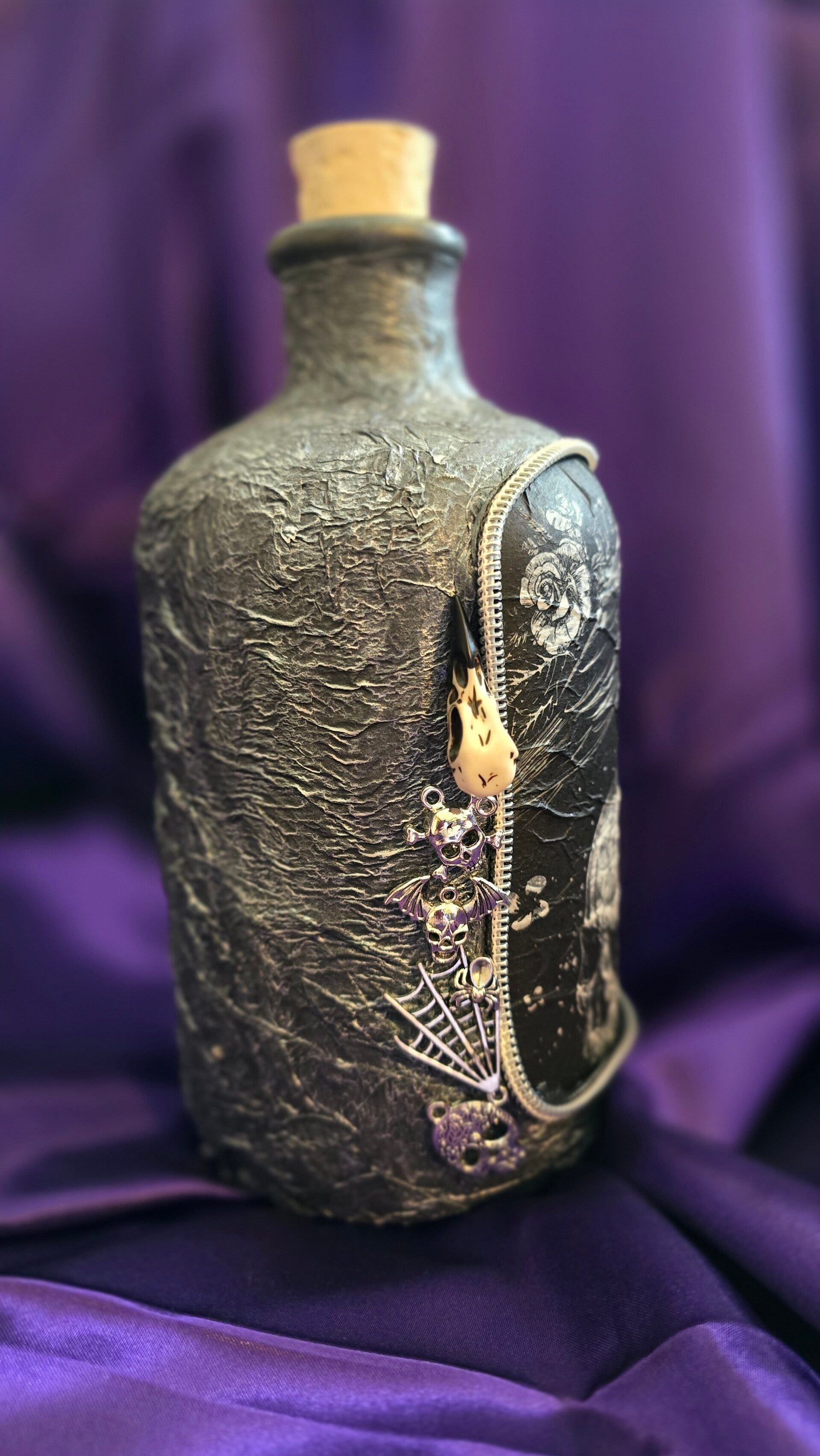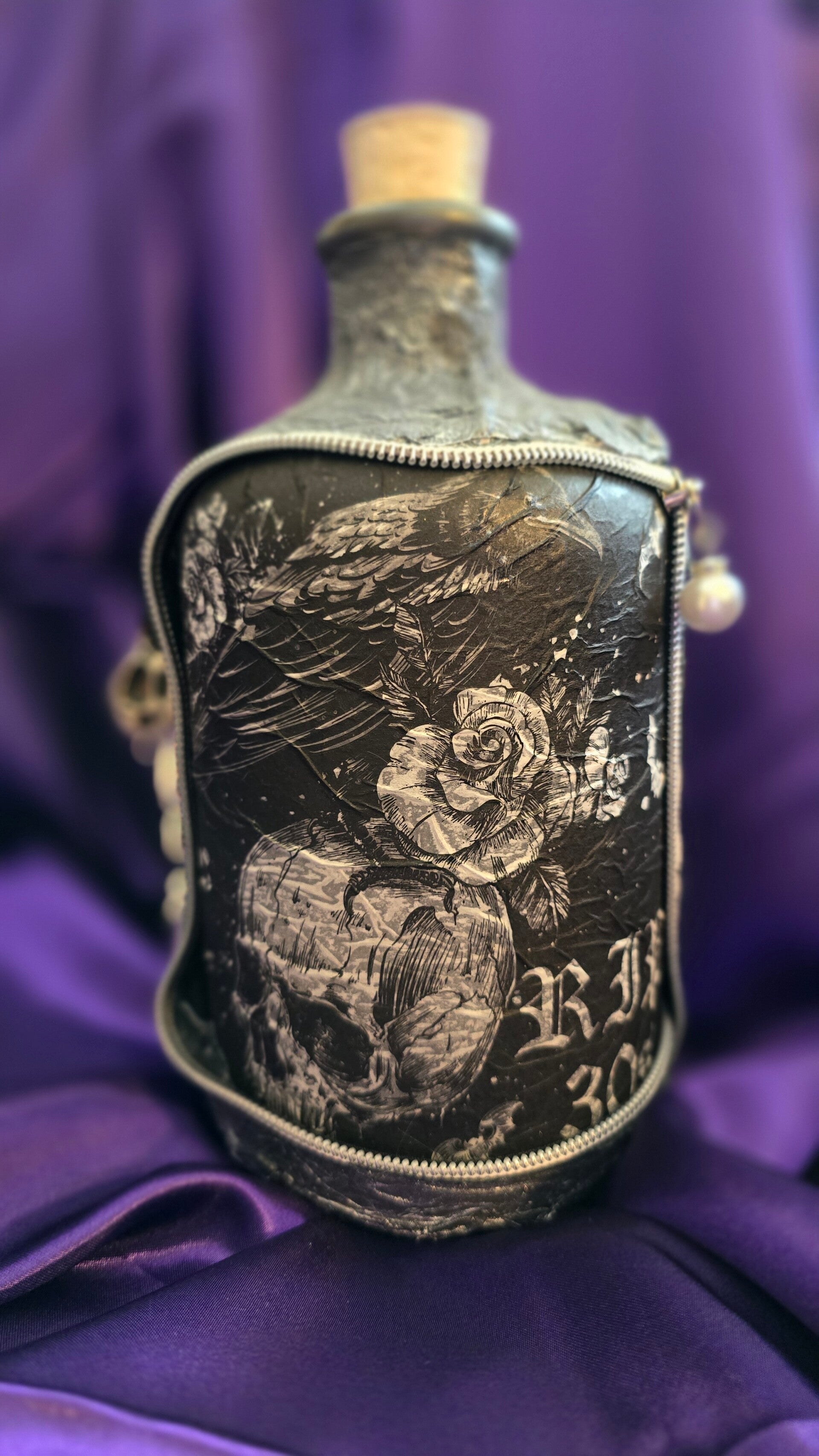 Bauchflasche groß mit Totenkopf und Rose